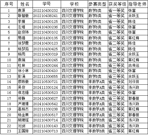 近日,第十七屆全國大學(xué)生數(shù)學(xué)競賽初賽獲獎名單正式揭曉。四川文理學(xué)院學(xué)子憑借扎實的數(shù)學(xué)功底和突出的競賽實力,在激烈角逐中脫穎而出,斬獲省級獎項23項。其中,省級一等獎4項、省級二等獎8項、省級三等獎11項,充分展現(xiàn)了我校學(xué)子優(yōu)良的學(xué)科素養(yǎng)與競技風(fēng)采。