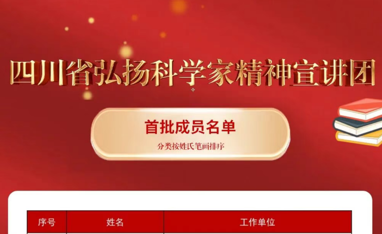 首批成員名單公布!四川省弘揚(yáng)科學(xué)家精神宣講團(tuán)來了 https://mp.weixin.qq.com/s/elQQtr0XMwDyVtClTLHsVQ