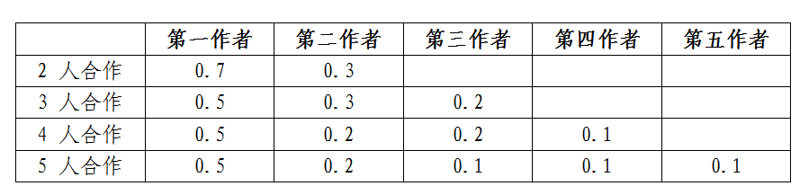 說明:所有合作成果均由負(fù)責(zé)人或第一作者在系統(tǒng)登記,并錄入合作成員貢獻率,可參考以下比例: