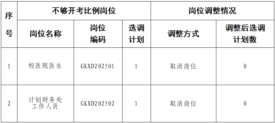 因選調(diào)崗位有效報(bào)考人數(shù)與選調(diào)名額之比未達(dá)到公告規(guī)定的筆試開(kāi)考比例,取消以下2個(gè)崗位,共2個(gè)選調(diào)名額: