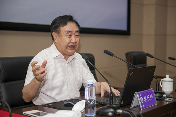 黨委書記王成端教授作主持總結(jié),他指出樊代明院士的報告高屋建瓴,深入淺出,詼諧幽默,精彩紛呈,既是一場知識盛宴,也是一場頭腦風暴,凝結(jié)了樊院士大量的工作及心血,充分展現(xiàn)了院士風采、學(xué)者風度和軍人氣質(zhì)。