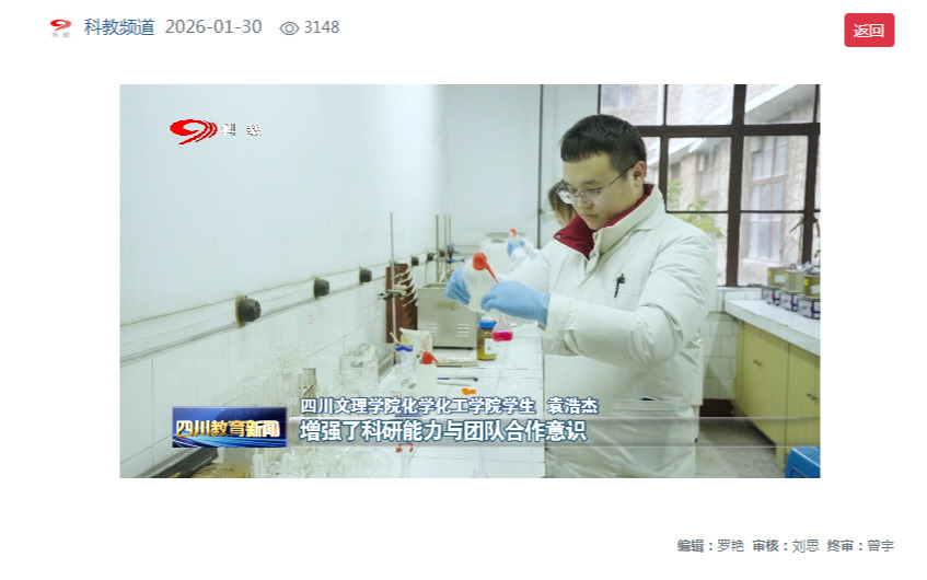 上一條:【新華網(wǎng)】四川文理學(xué)院化學(xué)化工學(xué)院:筑實(shí)多元平臺(tái)根基 精準(zhǔn)對(duì)接區(qū)域產(chǎn)業(yè)