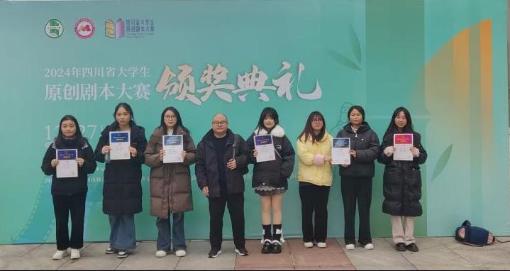 近日,由四川省教育廳主辦,四川師范大學(xué)承辦,聯(lián)合四川省作家協(xié)會(huì)、四川省文化廳劇目工作室等十家單位協(xié)辦的2024年第四屆四川省大學(xué)生原創(chuàng)劇本大賽圓滿落幕。文學(xué)與傳播學(xué)院的學(xué)子們憑借出色的劇本創(chuàng)作能力,斬獲多項(xiàng)重要獎(jiǎng)項(xiàng)。其中,原創(chuàng)劇本《巴蜀新青年》《壩壩宴》等10項(xiàng)作品獲一等獎(jiǎng),獲二等獎(jiǎng)21項(xiàng),三等獎(jiǎng)52項(xiàng)。我校獲優(yōu)秀組織獎(jiǎng),學(xué)院教師武計(jì)濤、陳夢(mèng)圓榮獲優(yōu)秀指導(dǎo)教師稱號(hào)。