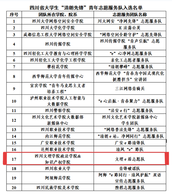 為深入學(xué)習(xí)貫徹習(xí)近平法治思想和習(xí)近平總書記關(guān)于網(wǎng)絡(luò)強(qiáng)國(guó)的重要思想,深入宣傳解讀互聯(lián)網(wǎng)法律法規(guī),大力普及網(wǎng)絡(luò)舉報(bào)辟謠知識(shí),提升青年學(xué)生對(duì)網(wǎng)絡(luò)有害信息的辨識(shí)能力,中共四川省委網(wǎng)信辦、共青團(tuán)四川省委聯(lián)合組織開展2025年在川高校大學(xué)生“e路同行 清風(fēng)護(hù)航”青春志愿專項(xiàng)行動(dòng),面向在川高校大學(xué)生選拔招募20支四川省大學(xué)生“清朗先鋒”青年志愿服務(wù)隊(duì)。我校“文理e盾志愿隊(duì)”脫穎而出,成功入選。
