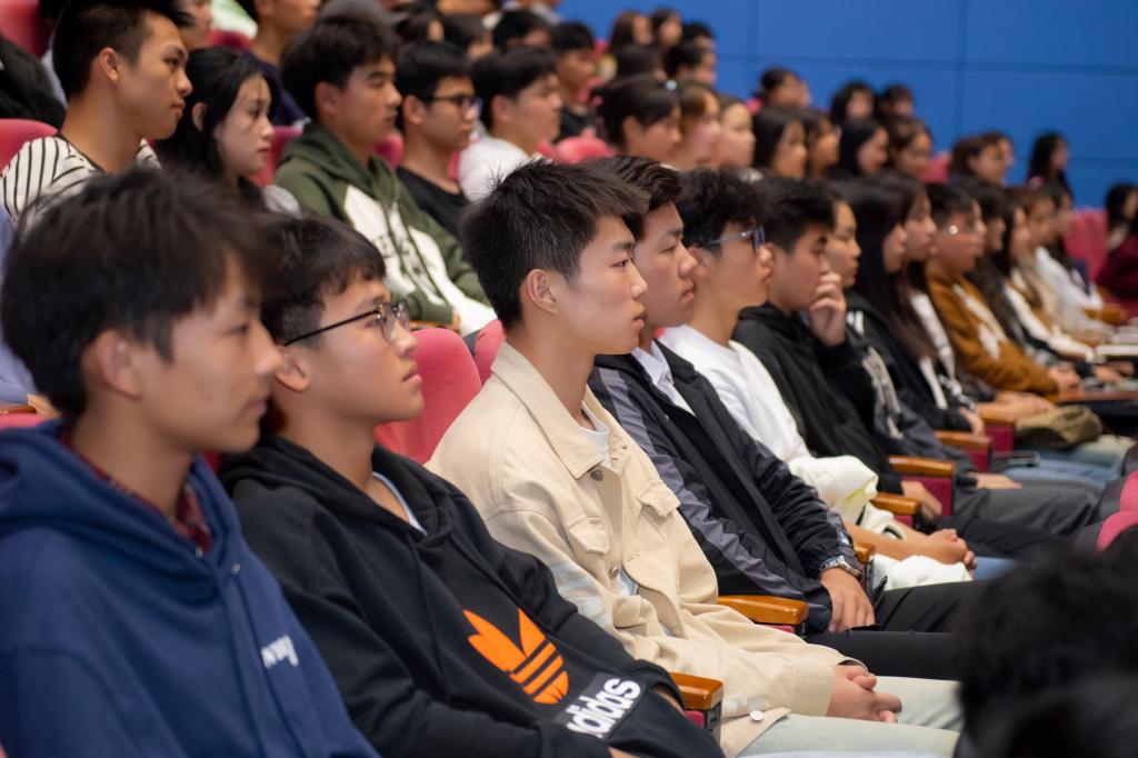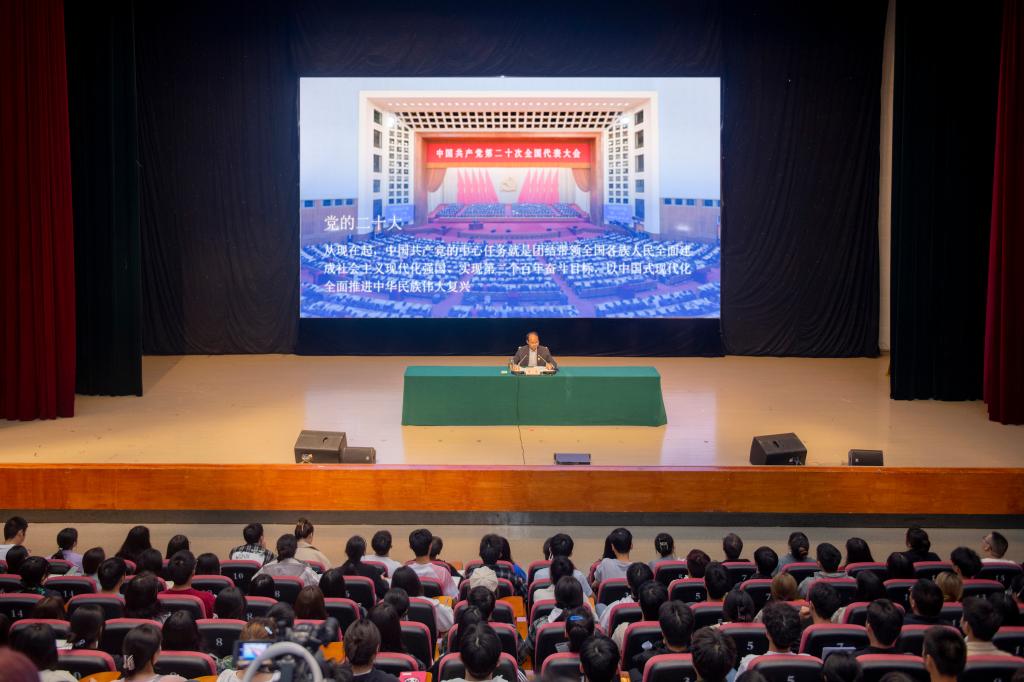9月26日,黨委書記黃濤在多功能廳以“扎根紅色沃土 奉獻青春力量 在中國式現(xiàn)代化新征程上揚帆起航”為主題,為2023級新生代表講授新學(xué)期“第一堂思政課”。本次課程采取線上線下結(jié)合方式進行。