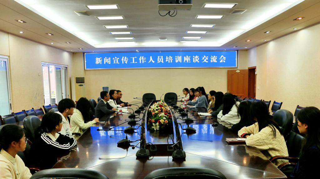 講座結(jié)束后,鄧靜與師生在弘德樓四樓會議室進行了座談,就“如何提高校園新聞寫作水平”這一主題與大家進行了深入交流。
