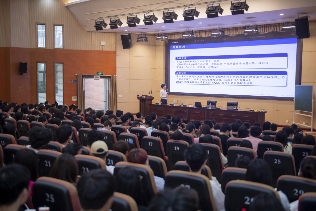 4月28日上午,南京大學(xué)數(shù)學(xué)學(xué)院教授、江蘇國家應(yīng)用數(shù)學(xué)中心主任秦厚榮應(yīng)邀來我校作題為《從勾股定理談起》的科普講座,帶領(lǐng)師生暢游數(shù)學(xué)世界,激發(fā)對數(shù)學(xué)的熱愛與追求。講座由副校長熊興中主持,數(shù)學(xué)學(xué)院師生共500余人到場聆聽講座。