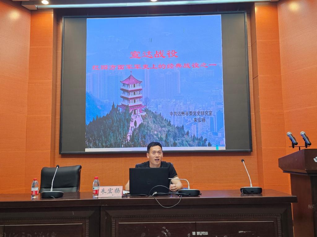 4月23日晚上,學校開展“紅色文化進社區(qū)系列活動二”,邀請到達州市委黨史研究室編研科科長朱宏揚,在學術報告廳B廳為同學們講述紅四方面軍軍史上經(jīng)典戰(zhàn)役之一——《宣達戰(zhàn)役》。
